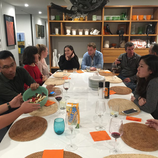 When dinner was ready, we all took our seats and enjoyed a night filled with laughter and stories that have been repeated a thousand times. There were 18 people seated around the table; new faces - some family members whom I've just met for the first time, and some friends whom have known about us but are only seeing us for the first time too. Aunty Di whipped up an amazing array of salads and side dishes, while Uncle John got busy on the grill - okay, I'll tell you : Baby tomatoes and feta salad, roasted beetroot, barbecued lamb and sausages. As for dessert, there was a Golden Kiwi Pavlova which was drizzled with Berry compote, Apple Crumble with Vanilla and Hokey Pokey ice-cream and a huge bowl of candy to go around - talk about chocolate with pineapple jam filling and gummy bears. This was probably the most I've eaten the whole time I've been in Auckland but I'm not complaining. Let's not even talk about the number of times my wine glass had been topped up and emptied that night.